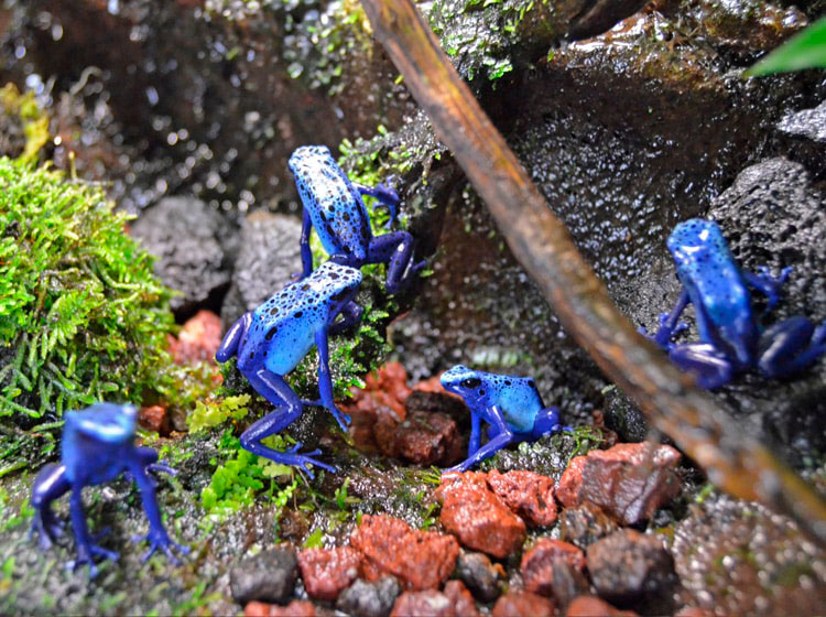 En BIOPARC Valencia podemos descubrir desde ayer hasta nueve especies de anfibios, todas incluidas en la lista roja de la UICN (Unión Internacional para la Conservación de la Naturaleza). Dos de ellas solo pueden verse en España en BIOPARC Valencia, la rana de lluvia malgache (Scaphiophryne madagascariensis) y la rana tomate (Dyscophus guineti). Las ranas mantelas están representadas con la marron (Mantella betsileo) y la dorada (Mantella aurantiaca), esta última en peligro crítico de extinción. Otras tres ranas son célebres por sus llamativos colores que advierten de su potente toxicidad: la veneno fantasma (Epipedobates tricolor), roja con franjas blancas; la veneno azul (Dendrobates tinctorius “azureus”) de tonalidad añil intenso con puntos negros; y la última incorporación, la rana flecha amarilla y azul (Dendrobates tinctorius “alanis”), de tono azul oscuro con detalles en amarillo, sigue utilizándose su veneno para impregnar las flechas.